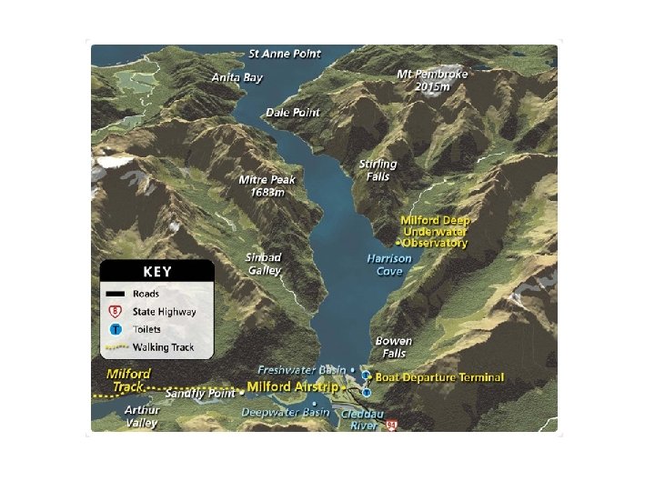 Milford Sound A gem of a place… • Milford Sound is often described using superlatives like………. 1. A National treasure 2. The Jewel in Fiordland’s tourism crown 3. The Goose that lays the golden egg. • Which of these superlatives suggests Milford Sound is of… • i) environmental importance • ii) economic importance • iii) regional significance • iv) national significance