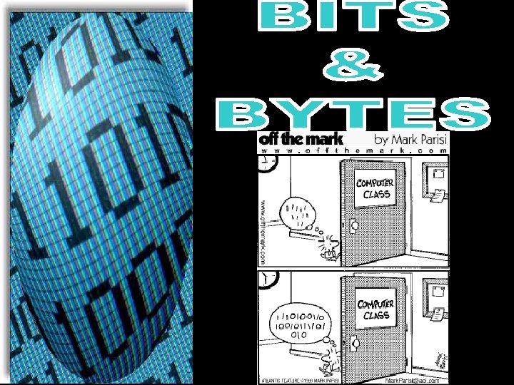 Each binary digit, 0 or 1, is a BIT A BIT the smallest unit of data a computer can process 1 = a short burst of electricity ON 0 = means no electricity OFF All letters, numbers, and symbols we use are represented by eight bits The word “cool” in binary numbers 01000011 01001111 01001100