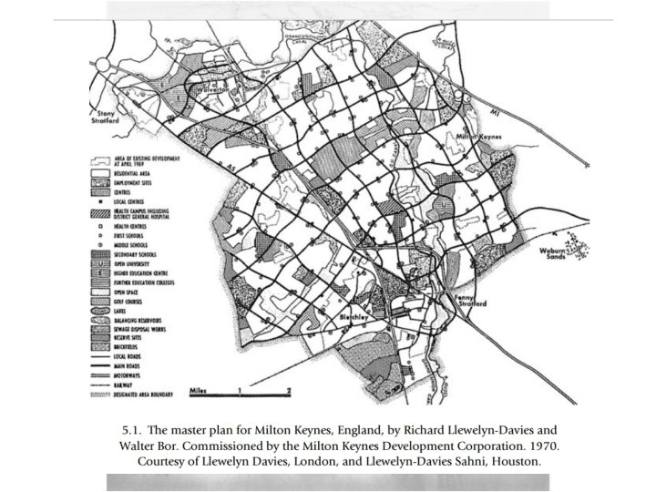 Milton Keynes compared with other postwar new towns 1969 community consultations: Walter Bor compared the plans with Stevenage: “the idea is to have a flexible framework to try and provide for the unrestricted use of the car, with public transport service as well, small buses with easy access. We will not as in the old new towns have interlocking neighbourhoods but Activity Centre at the crossing points for the development of the community. Market demands will be largely responsible for the siting of shops, schools, etc. ” • Clapson, ed. , The Plan for Milton Keynes, p. 10. Aimed for ‘balance and variety’ of social class, whereas the earlier new towns were predominantly working-class ‘overspill’ from slum clearance