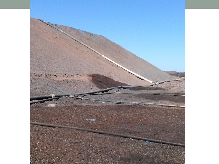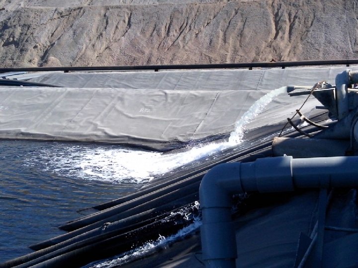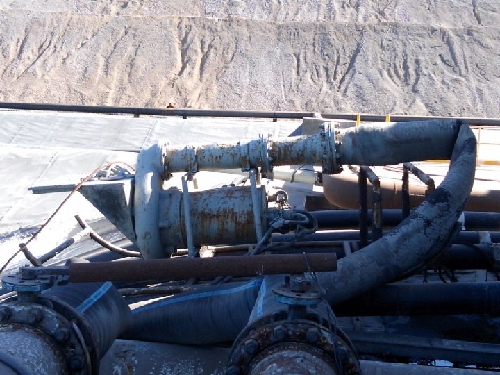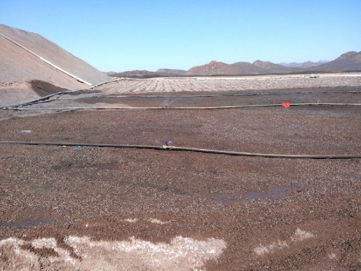 EN EL TANQUE BARREN SE TRANSMITE HACIA LOS PATIOS DE LIXIVIACION CON 2 BOMBAS DE 300 HP CON UN FLUJO DE 715 Mᶟ/Hr, CON 1533 RPM , A UNA DISTANCIA DE 1 Km 300 Mts , CON UN DIAMETRO DE 16 QUE SE VA REDUCIENDO EN EL RECORRIDO EN DIAMETROS DE LAS 12 -10 -8 -6 -4 -2 -1/2. CON LA REDUCCION EN ½ ES DONDE SE HACE EL RIEGO POR GOTEO Y EN EL DIAMETRO DE 2 SE HACEN LOS RAMALES LOS CUALES SE CONECTAN MEDIANTE ASPERSORES.
