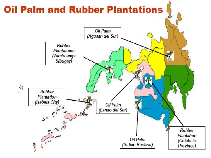 Palm oil q 170, 000 ektarya sa Shannnalyne Environmental and Technological Park, Esperanza-Lorenzo, Agusan del Sur. q 15, 391 ektarya sa Tambuli Mining Company, San Luis, Agusan del Sur.