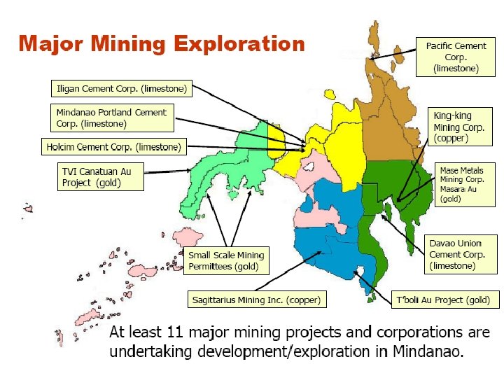 Mining Taganito mining Tenements in Lake Mainit KEY BIODIVERSITY AREAS in Mindanao, Tubay mining ancestral domain areas, mono-crop plantations, Claver mining Mi biofuels, and mining ds TV I ali p mi nin g ten em ent s Bunawan mining Pantaron tenements S MI Xt rat a Di Omega Gold wa lw Ph al ilc PMo Ma DCSi. Mi sar e a rni mirng ni a B ngm i n g HP Bil lit on