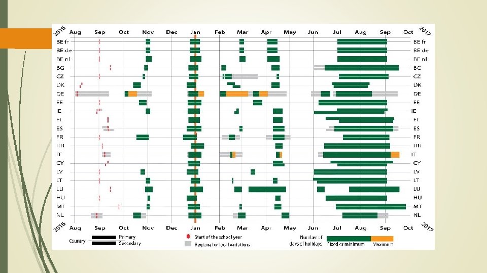 Nemzetközi kitekintés Mikor kezdődik a tanév? 11 országban/régióban augusztus 1. és 31. között (pl: Svédország aug. közepe, Finnország 08. 10 -18. , Norvégia 08. 17 -22. , Dánia 08. 10, Svájc 08. 08 -29. , Hollandia 08. 22 -09. 05, Anglia 08. 25 -09. 07. , Skócia aug. közepe, Németországban aug. 1. és szept. 13. között) 16 országban/régióban szeptember 1. (pl: Belgium, Szlovénia, Bosznia. Hercegovina, Szerbia, Észtország, Lettország, Litvánia, Csehország, Franciaország, Lengyelország, Magyarország) 4 országban/régióban szeptember első hetében (Horvátország 09. 05. , Írország, Szlovákia 09. 05. , Ausztria 09. 05 -12) 9 országban/régióban szeptember közepén (Olaszország 09. 05 -12. , Spanyolország 09. 05 -13, Bulgária 09. 15. , Ciprus 09. 12. , Görögország 09. 12. , Portugália 09. 09 -15. , Törökország 09. 12 -19, Románia 09. 12. , Luxemburg 09. 15. , Málta 09. 26.