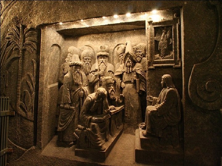 Les sculptures religieuses sont, en réalité, ce qui attire le plus les gens vers cette mine - tant pour leur vraisemblance étonnante que pour leur esthétique chrétienne. Ce qui précède montre Jésus apparaissant aux apôtres après la crucifixion. Il montre à l'incrédule Saint Thomas, les plaies sur ses poignets.