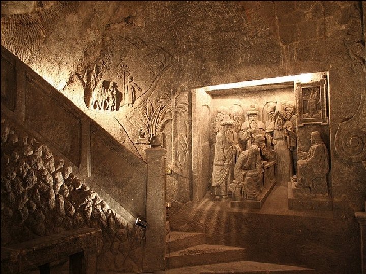 • Tout le travail n’est pas basé sur le relief. Il y a des statues grandeur nature qui ont du prendre un temps fou - des mois, voire des années - à créer. Dans l’enceinte de la mine il y a également beaucoup à apprendre sur les mineurs sur les machines et les outils qu'ils utilisaient - beaucoup sont exposés et sont vieux de plusieurs siècles. Une inondation catastrophique en 1992 porta le dernier coup à l'extraction commerciale du sel dans la région et maintenant la mine fonctionne surtout comme une attraction touristique. La saumure est, cependant, encore extraite de la mine - et ensuite évaporée pour produire un peu de sel, mais beaucoup moins qu’autrefois. Si ce n'était pas fait, alors les mines seraient encore bientôt inondées.