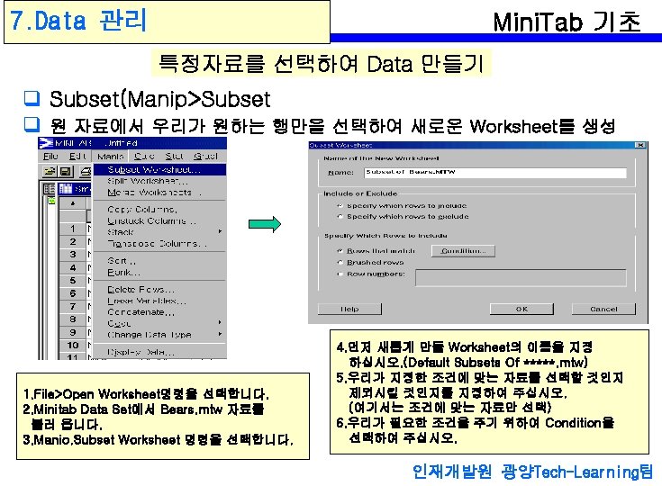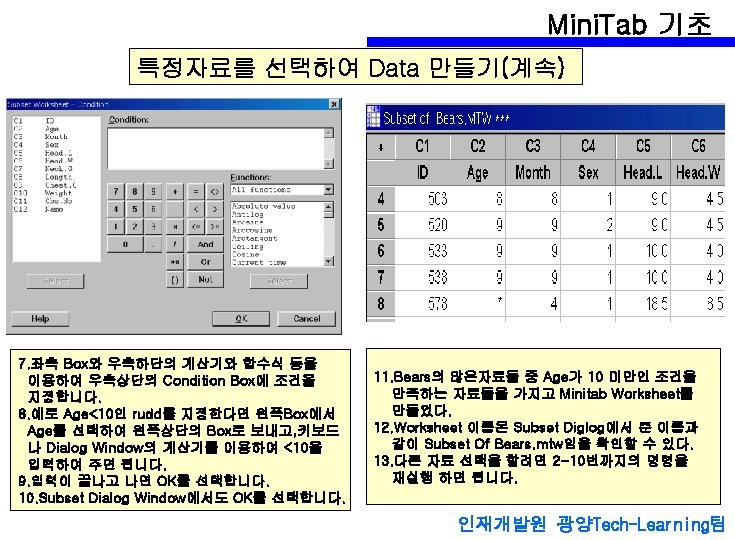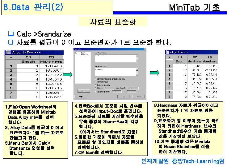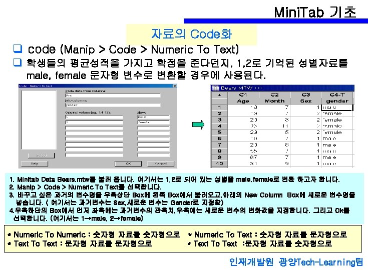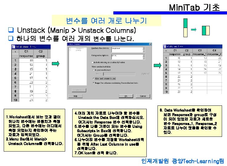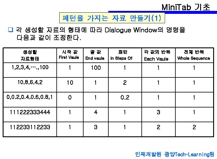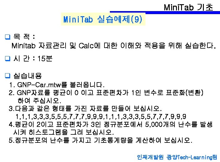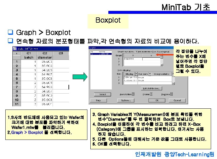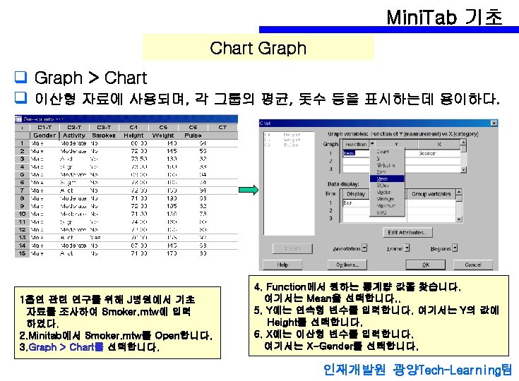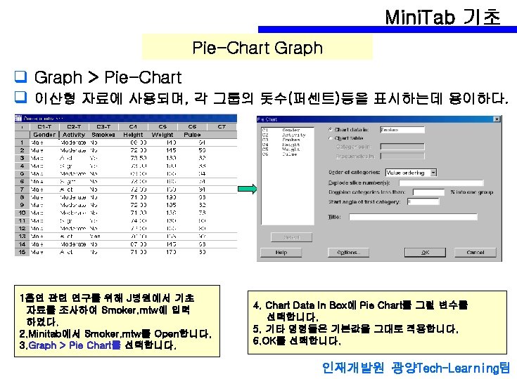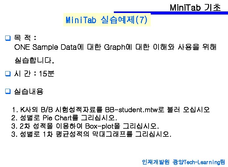 Mini. Tab 기초 Minitab Chart Output q Chart는 Graph Window로 출력된다. 차이를 확인 인재개발원 광양Tech-Learning팀