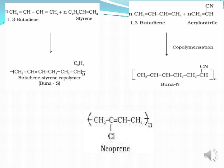 Elastomers They are solids with rubber like elastic properties. Here the polymeric chains are held together by the weakest intermolecular forces so they are highly amorphous in nature. These weak binding forces permit them to be stretched. E. g. Natural rubber, BUNA-S, BUNA-N, Vulcanised rubber