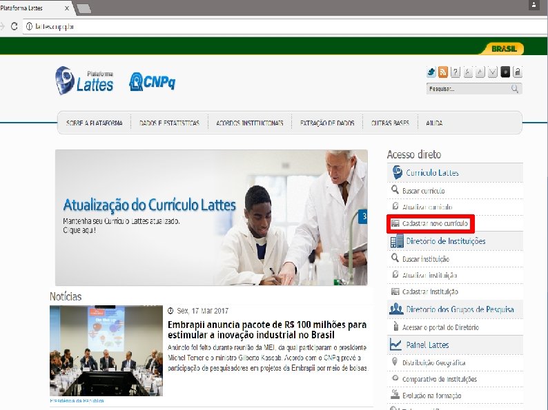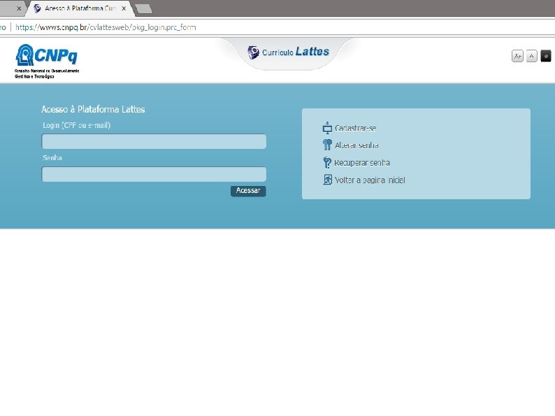 Como cadastrar seu currículo na Plataforma Lattes? ● Acesse o site http: //www. lattes. cnpq. br ● Clique na opção Cadastrar novo currículo para criar seu Lattes.