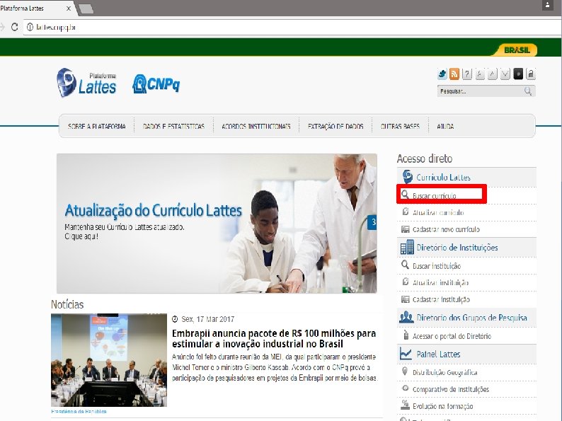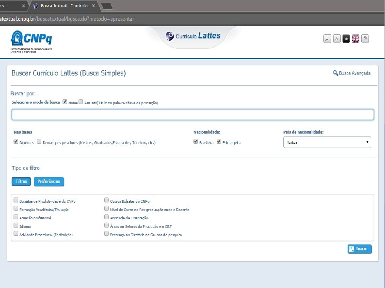 Como buscar currículos na Plataforma Lattes? ● Acesse o site http: //www. lattes. cnpq. br ● Clique na opção Buscar atualizar o seu Lattes. currículo para