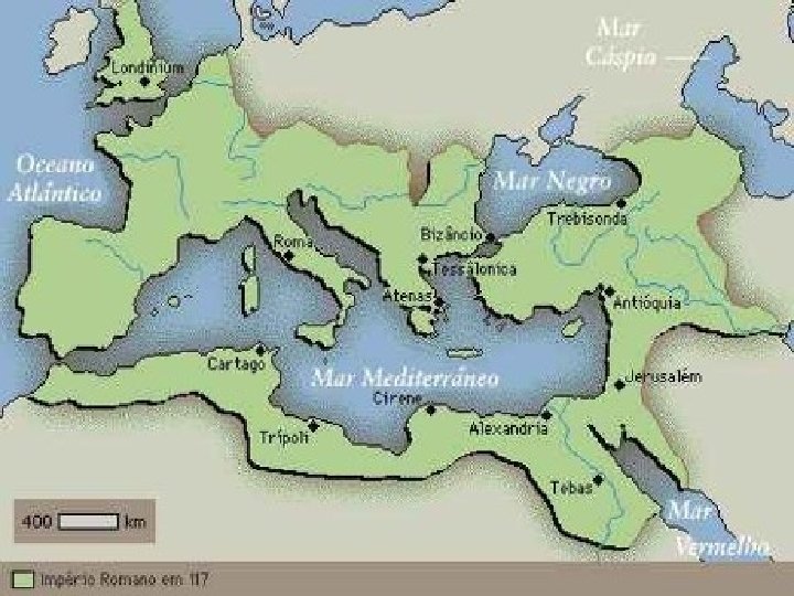 Guerras Púnicas (264 a 146 a. c. ) Desenvolvimento militar romano levou a uma política expansionista Durante o período republicano eles dominaram toda a península itálica, avançando sobre uma rica região do norte da África, Cartago, responsável pelo controle marítimo do Mar Mediterrâneo A destruição de Cartago se deu pela mão do general Cipião Emílio O expansionismo romano foi intensificado e eles conquistaram a Macedônia, a Grécia, o Egito e o Oriente Médio, além da Europa Ocidental e a Gália Aumento da escravidão