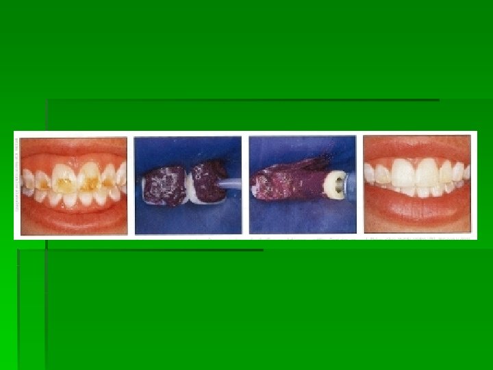 MIKROABRAZIJA § Terapijski postupak s kojim se liječe promjene u površinskim slojevima zubne cakline (razvojne i stečene promjene zuba, početna karijesna lezija) § Korištenje ABRAZIVNE PASTE i ROTIRAJUĆE GUMICE ZA POLIRANJE