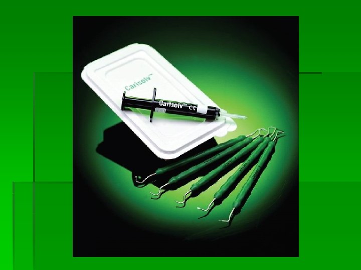 KEMIJSKO-MEHANIČKO UKLANJANJE KARIJESA-CARISOLV § Metoda za kemijsko-mehaničko odstranjenje karijesa kojom se karijesom promijenjeni dentin tretira kemijski da bi se razmekšao te se potom mehanički odstranjuje posebno izrađenim ručnim instrumentom