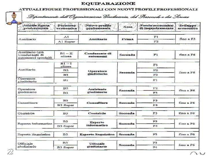 • Ufficiale giudiziario C 1 dirigente • Ufficiali giudiziari C 1 • Ufficiali giudiziari B 3 • Operatori giudiziari B 2