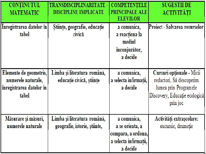 Limba si literatura română Matematica si Științele naturii Educația civică Interdisciplinalitatea