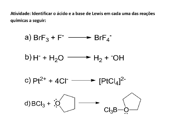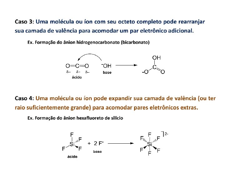Exercícios Nomeie os seguintes ácidos e bases CO 2 + OH- HCO 3 -
