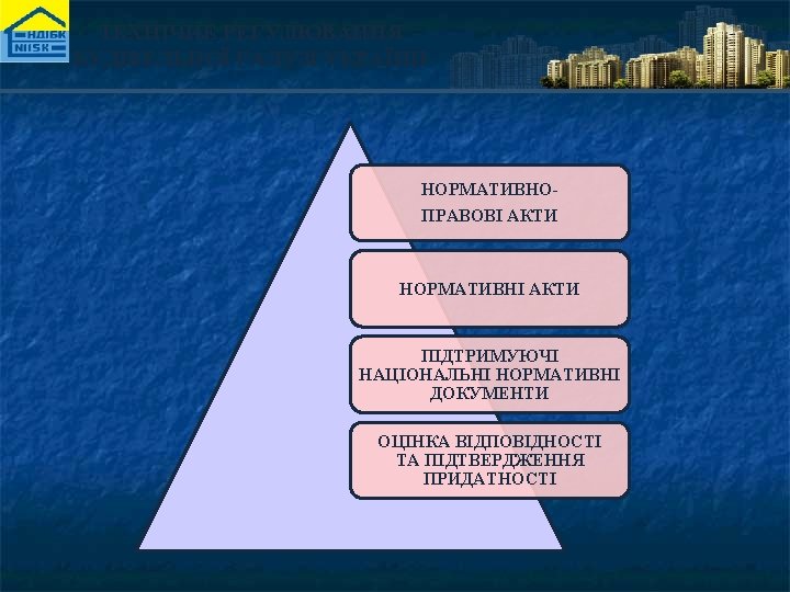 RELIABILITY REQUIREMENTS STANDATDIZATION DBN V. 1. 2 -11 -2008 – 11 • establishes requirements for the incorporation of durability parameters of construction products in the relevant regulatory documents • • • The requirements are implemented in the following building regulations: DBN V. 2. 6 -31: 2016 and DBN V. 2. 6 -33 and in regulatory documents as follows DSTU B V. 2. 6 -34: 2008, DSTU B V. 2. 6 -35: 2008 and DSTU B V. 2. 6 -36: 2008