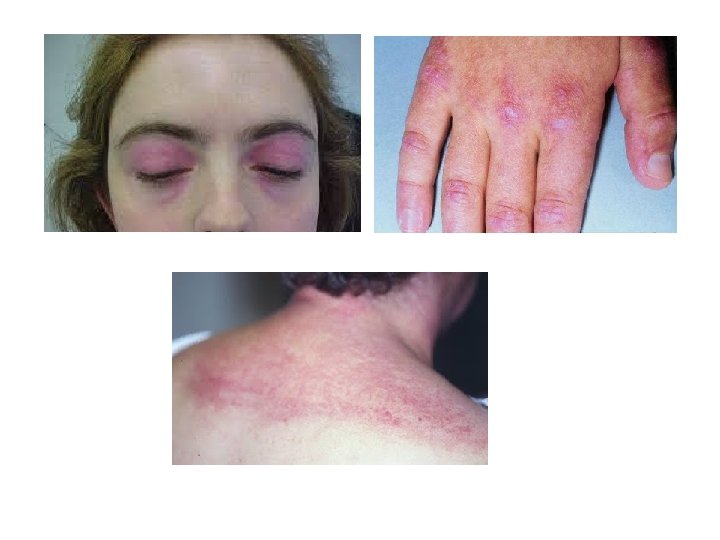 Criterios Diagnósticos (Bohan y Peter). 1 DEBILIDAD MUSCULAR PROXIMAL Y SIMETRICA. 2 ELEVACIÓN DE LAS ENZIMAS SÉRICAS: CPK, GOT, GPT, LDH, aldolasa 3 ALTERACIONES ELECTROMIOGRÁFICAS CARACTERÍSTICAS 4 ALTERACIONES DE LA BIOPSIA MUSCULAR. a) necrosis y regeneración de fibra muscular b) infiltrado inflamatorio de celulas mononucleares en el intersticio. 5 ERUPCION CUTANEA TÍPICA (eritema heliotropo, pápulas de Gottron) DIAGNÓSTICO Definido si se cumplen los 4 criterios. Probable si 3 criterios. Posible si 2 criterios. Para DERMATOMIOSITIS es obligatorio el 5º