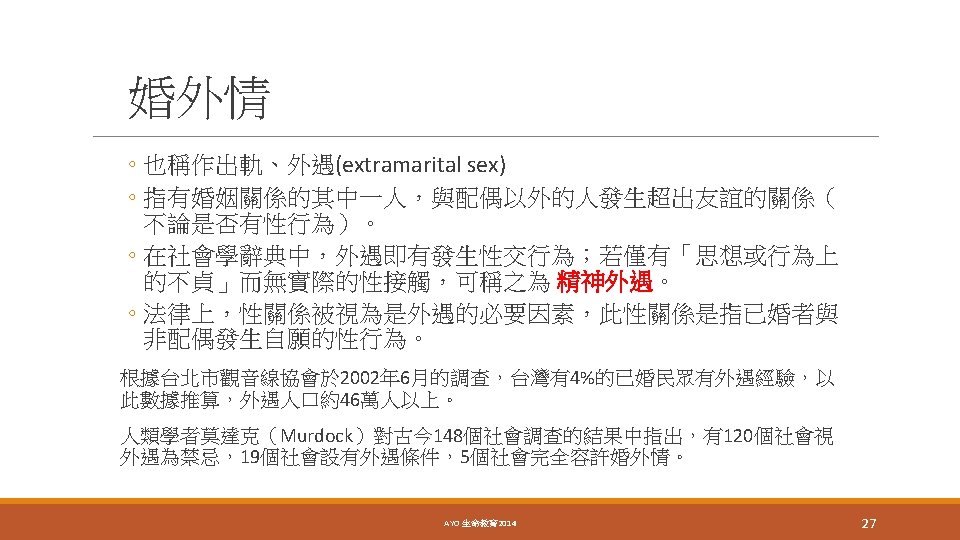 The polygyny threshold model (PTM) AYO 生命教育 20 2014