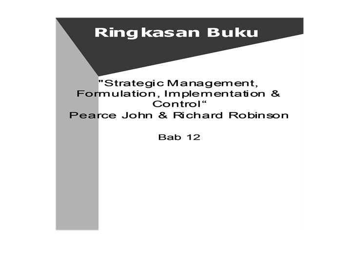 Misi Perusahaan Tanggung Jawab Sosial & Etika ( Bab 2, 3 ) Lingkungan External Domestik & Global Remote, Industri, Oprasi ( Bab 4, 5 ) U M P A N B A L I K Mungkin Yang diinginkan Analisa Internal ( Bab 6) Pilihan dan analisa Strategi ( Bab 8, 9 ) Sasaran Hasil Jangka Panjang ( Bab 7 ) Sasaran Hasil Jangka Pendek Memberi penghargaan sistem ( Bab 10 ) Strategi yang umum dan baik ( Bab 7 ) Taktik Fungsional ( Bab 10 Struktur Organisasi , Kepemimpinan dan Budaya ( Bab 11, 12 ) Strategi Control, Inovasi dan Kewiraan ( Bab 13 ) Impac Utama Impac Kecil Kebijakan ( Bab 10 ) U M P A N B A L I K