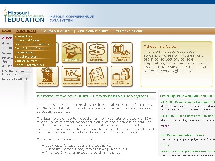 MISSOURI COMPREHENSIVE DATA SYSTEM OFFICE OF DATA SYSTEM MANAGEMENT July 26 , 2011 Missouri Department of Elementary and Secondary Education