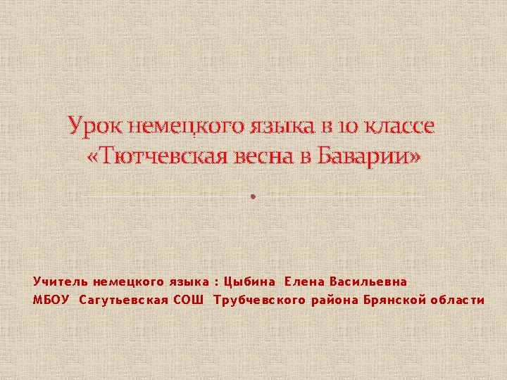 . Tjutschews Frühling in Bayern Tjutschews Gedichte sind in Russland jedem seit dem ersten Schuljahr bekannt. Aber nur wenige wissen , dass Tjutschew seine schӧnen Naturskizzen nicht bei Moskau , sondern bei München verfasst hat , wo er von 1822 bis 1844 zuerst als Diplomat und spӓter als Privatier lebte