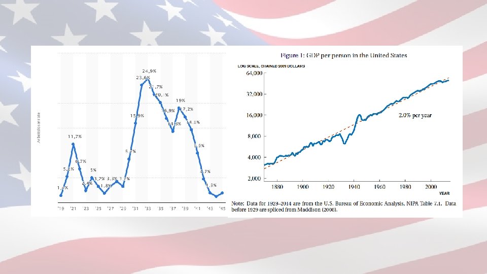 „New Deal“ (1933) • Franklin D. Roosevelt gibt Bevölkerung wieder Hoffnung • Sozial- und Wirtschaftsreformen -> z. B. : Arbeitsbeschaffungsmaßnahmen, Finanzmarktregulierung, Einführung von Mindestlohn und einer Sozialversicherung • „Great Depression“ wird gelindert • Erst mit Kriegseintritt in den 2. Weltkrieg überwunden