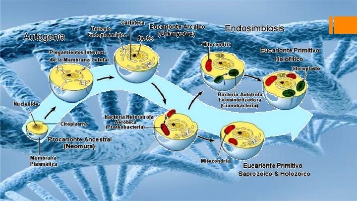 Hipótesis endosimbiótica § Casi todos los biólogos aceptan la hipótesis de que las mitocondrias y los cloroplastos evolucionaron de bacterias procariontes que se establecieron hace mucho dentro del citoplasma de otras células procariontes mediante endosimbiosis