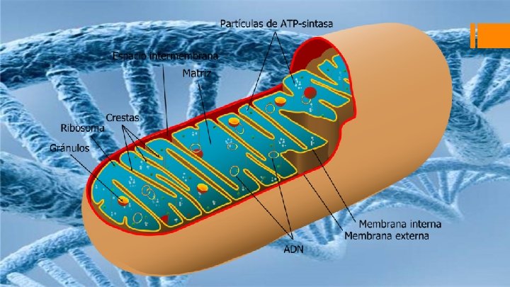 Las mitocondrias producen ATP con la energía almacenada en las moléculas de comida § Todas las células eucariontes contienen mitocondrias, que a veces se describen como el “cuarto de máquinas” de la célula, dado que extraen energía de las moléculas alimentarias y la almacenan en los enlaces energético del ATP. La degradación de las moléculas alimentarias comienzan con las enzimas del citosol y no consume oxígeno.