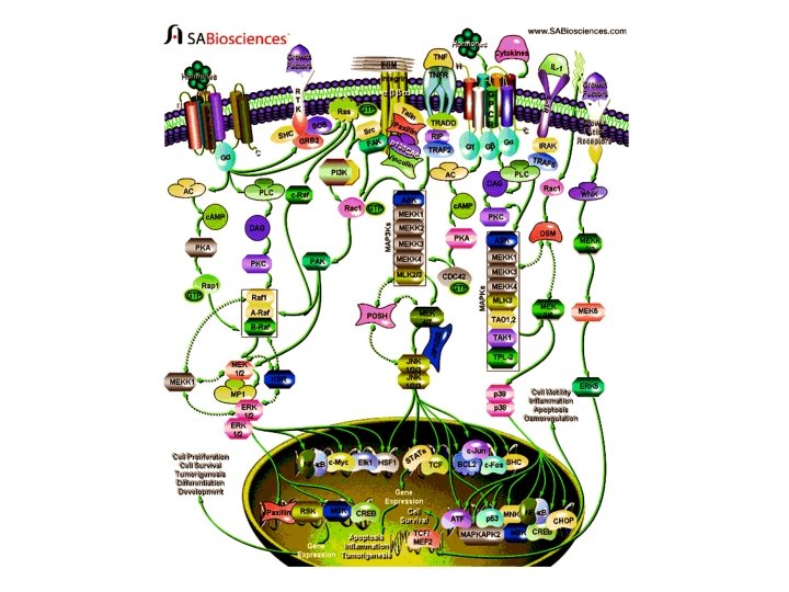 Heasley LE, Han SY. JNK Regulation of Oncogenesis. Mol Cells. 2006 Apr 30; 21(2): 167 -73. Mittelstadt PR, Salvador JM, Fornace AJ Jr, Ashwell JD. Activating p 38 MAPK: new tricks for an old kinase. Cell Cycle. 2005 Sep; 4(9): 1189 -92. Epub 2005 Sep 20. Vergarajauregui S, San Miguel A, Puertollano R. Activation of p 38 Mitogen-Activated Protein Kinase Promotes Epidermal Growth Factor Receptor Internalization. Traffic. 2006 Jun; 7(6): 686 -98. Kaur R, Liu X, Gjoerup O, Zhang A, Yuan X, Balk SP, Schneider MC, Lu ML. Activation of p 21 -activated kinase 6 by MAP kinase 6 and p 38 MAP kinase. J Biol Chem. 2005 Feb 4; 280(5): 3323 -30. Epub 2004 Nov 18. Lokuta MA, Huttenlocher A. TNF-alpha promotes a stop signal that inhibits neutrophil polarization and migration via a p 38 MAPK pathway. J Leukoc Biol. 2005 Jul; 78(1): 210 -9. Epub 2005 Apr 21. Kortum RL, Costanzo DL, Haferbier J, Schreiner SJ, Razidlo GL, Wu MH, Volle DJ, Mori T, Sakaue H, Chaika NV, Chaika OV, Lewis RE. The molecular scaffold kinase suppressor of Ras 1 (KSR 1) regulates adipogenesis. Mol Cell Biol. 2005 Sep; 25(17): 7592 -604. Moulin N, Widmann C. Islet-brain (IB)/JNK-interacting proteins (JIPs): future targets for the treatment of neurodegenerative diseases? Curr Neurovasc Res. 2004 Apr; 1(2): 111 -27. Copyright © 1998 - 2009 SABiosciences Corporation