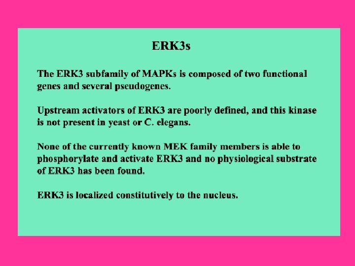 1. Wada T, Penninger JM. Mitogen-activated protein kinases in apoptosis regulation. Oncogene. 2004 Apr 12; 23(16): 2838 -49. 2. Panka DJ, Atkins MB, Mier JW. Targeting the mitogen-activated protein kinase pathway in the treatment of malignant melanoma. Clin Cancer Res. 2006 Apr 1; 12(7 Pt 2): 2371 s-2375 s. 3. Subramaniam S, Unsicker K. Extracellular signal-regulated kinase as an inducer of non-apoptotic neuronal death. Neuroscience. 2006; 138(4): 1055 -65. Epub 2006 Jan 25. 4. Osmond RI, Sheehan A, Borowicz R, Barnett E, Harvey G, Turner C, Brown A, Crouch MF, Dyer AR. GPCR screening via ERK 1/2: a novel platform for screening G protein-coupled receptors. J Biomol Screen. 2005 Oct; 10(7): 730 -7. Epub 2005 Aug 29. 5. Ginnan R, Guikema BJ, Singer HA, Jourd'heuil D. PKC{delta} mediates activation of ERK 1/2 and induction of i. NOS by Interleukin-1{beta} in Vascular Smooth Muscle Cells. Am J Physiol Cell Physiol. 2006 Jan 25; 6. Chuderland D, Seger R. Protein-protein interactions in the regulation of the extracellular signal-regulated kinase. Mol Biotechnol. 2005 Jan; 29(1): 57 -74. 7. Wang X, Tournier C. Regulation of cellular functions by the ERK 5 signalling pathway. Cell Signal. 2006 Jun; 18(6): 753 -60. Epub 2006 Jan 6. 8. Ranganathan A, Pearson GW, Chrestensen CA, Sturgill TW, Cobb MH. The MAP kinase ERK 5 binds to and phosphorylates p 90 RSK. Arch Biochem Biophys. 2006 May 15; 449(1 -2): 8 -16. Epub 2006 Mar 13. 9. Yang Q, Kim YS, Lin Y, Lewis J, Neckers L, Liu ZG. Tumour necrosis factor receptor 1 mediates endoplasmic reticulum stress-induced activation of the MAP kinase JNK. EMBO Rep. 2006 May 5; 10. Yamauchi J, Miyamoto Y, Kokubu H, Nishii H, Okamoto M, Sugawara Y, Hirasawa A, Tsujimoto G, Itoh H. Endothelin suppresses cell migration via the JNK signaling pathway in a manner dependent upon Src kinase, Rac 1, and Cdc 42. FEBS Lett. 2002 Sep 11; 527(1 -3): 284 -8.