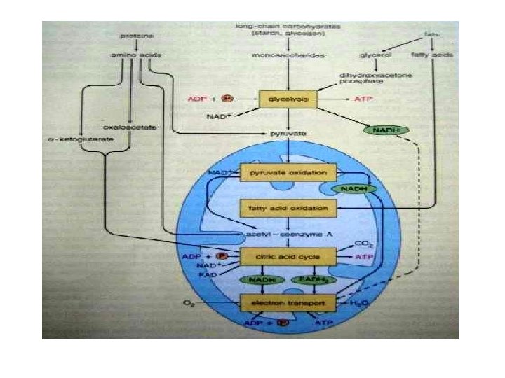 Mitokondria berfungsi banyak dalam metabolisme 1. Respirasi: fase-fase yang menghasilkan tenaga pada metabolisme KH dan lemak 2. Sintesis ATP 3. Sintesis porfirin
