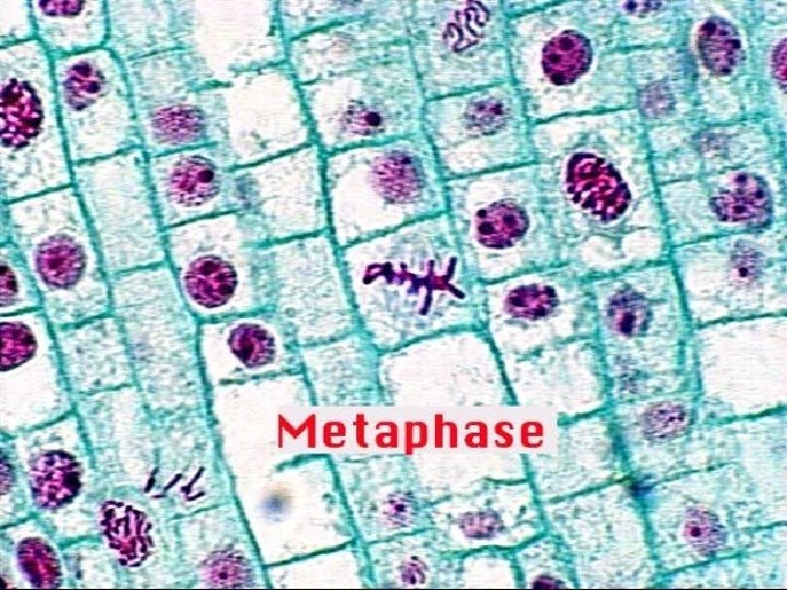 Metaphase • Chromosomes are pulled to center of cell • Line up along “metaphase plate”