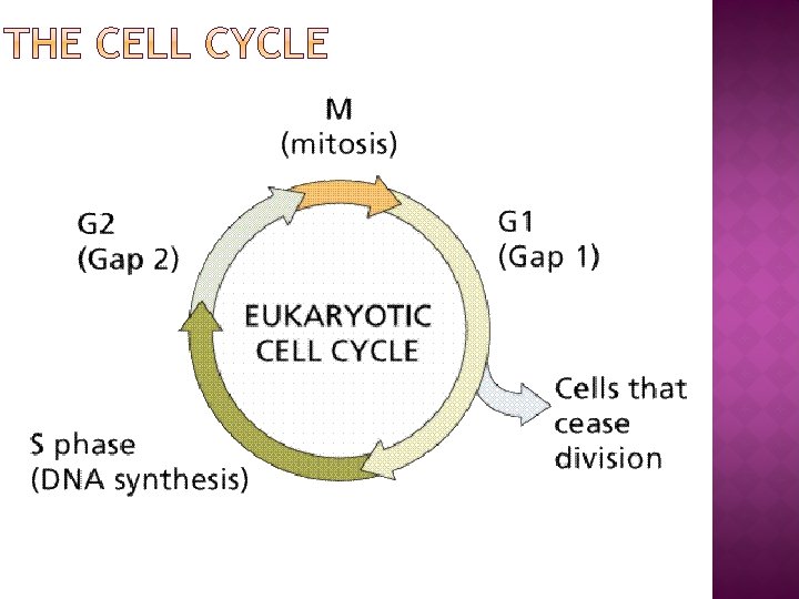 The Cell Cycle is a series of events that takes place in the cell, leading to its division and duplication. The cell cycle consists of four distinct phases: _______, ____. (G 1) (S) (G 2) (M)