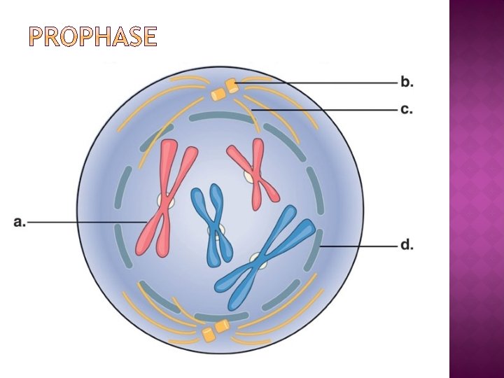 It is one of the longest phases. In this phase: � The nuclear envelope and nucleolus dissolves. � The DNA (chromatin) starts to condense into chromosomes. � _____ replicate and move to opposite sides of the cell (the poles).