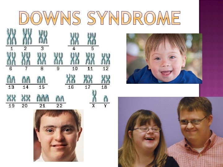 When chromosomes fail to SEPARATE PROPERLY during meiosis Produces sperm and eggs that have an ABNORMAL number of chromosomes They should always have 23 This commonly leads to DOWN SYNDROME – when a child is born with 3 copies of chromosome 21 Called a trisomy-21