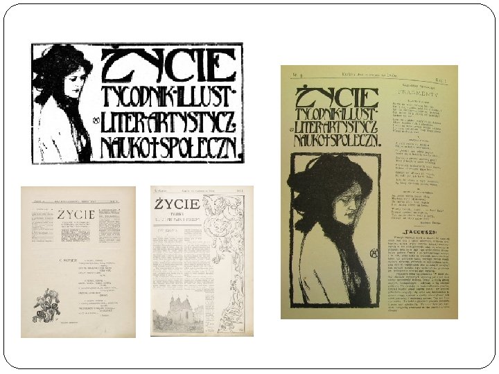 Mladopolské časopisy �časopis Życie (Varšava, 1887– 1891): Miriam; mj. i reflexe literárního vývoje v Evropě, překlady apod. ; tento časopis položil základy modernistického uměleckého programu v Polsku (viz doba, kdy vycházel) - později vycházel v Krakově (1897– 1900): např. básník Ludwik Szczepański, kritik Artur Górski (cyklus článků Młoda Polska), St. Przybyszewski, St. Wyspiański - propracovaná grafika a vizuální podoba