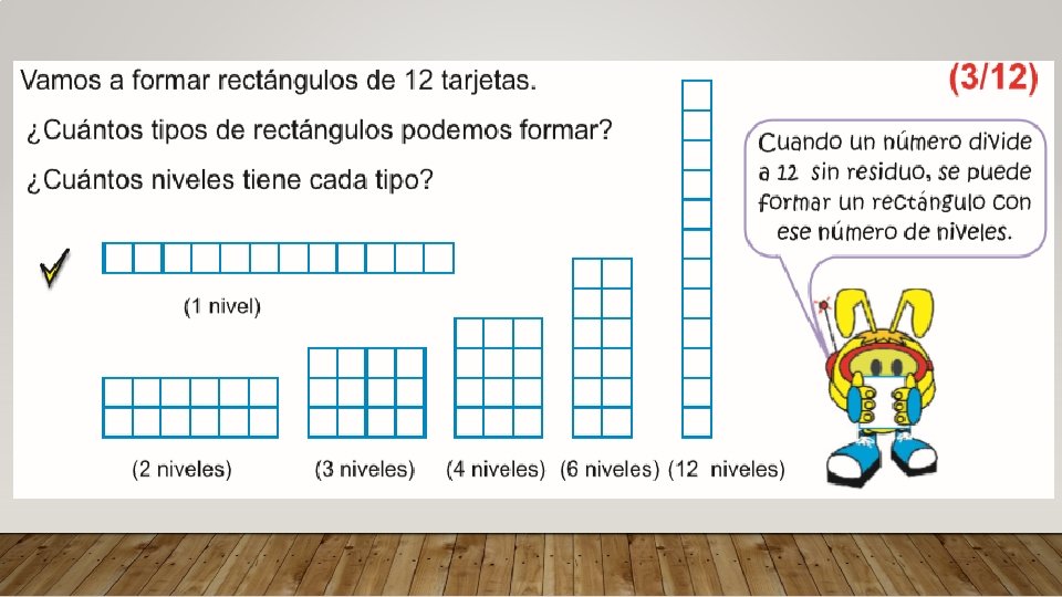 ACTIVIDAD • FORMAR RECTÁNGULOS CON 12 TARJETAS ¿Cuántas filas tiene cada rectángulo formado?