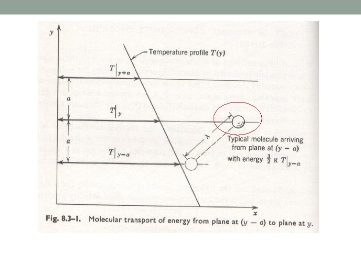 • Penentuan konduktivitas panas dilakukan dengan mengamati kelakuan gas pada gradien temperatur d. T/dy • Rata-rata energi kinetik ketika tabrakan pada daerah temperatur T • Fluks panas qy yang melintasi bidang adalah jumlah energi kinetik