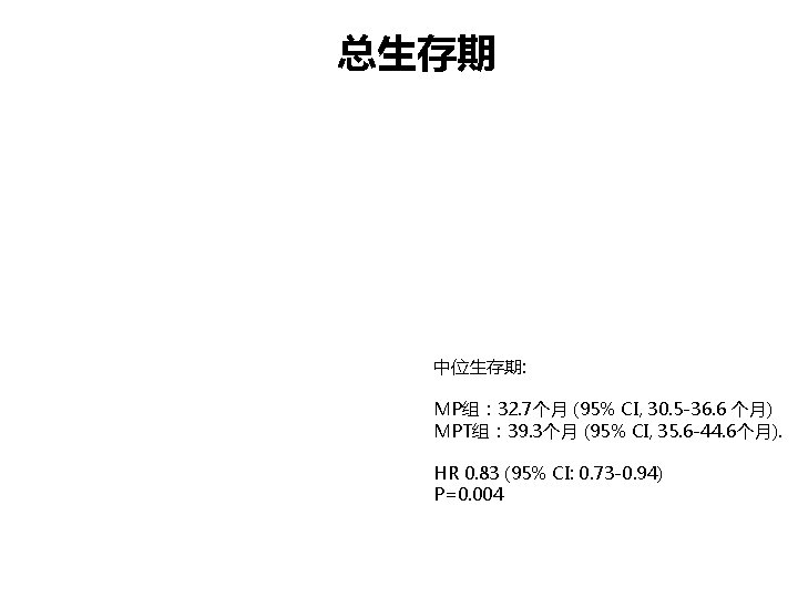 MM总生存期的趋势 1. 0 总生存期 1971– 2006 诊断周期 1996– 2006 1971– 1996 0. 8 2001– 2006 生存率 0. 6 45 个月 30 个月 (P<0. 001) OS, overall survival. 0. 4 0. 2 0 0 2 中位 OS 20 40 60 80 100 距离诊断时间(月) Kumar SK, et al. Blood. 2008; 111: 2516 -2520. 120 140 1971– 1976 1989– 1994 1977– 1982 1995– 2000 1983– 1988 2001– 2006 M