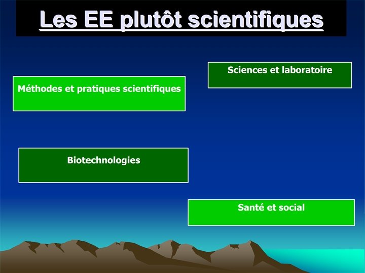 1 économie + Au choix EE Scientifiques Méthodes et Pratiques Ecologie, agronomie, territoire Scientifiques et développement durable