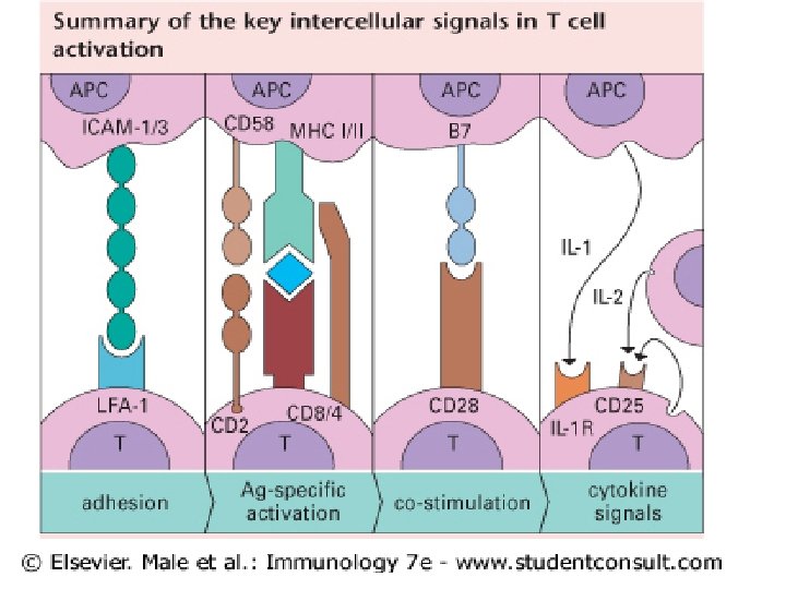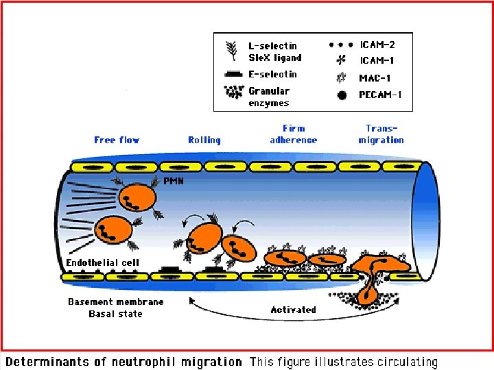 Adezyon molekülü Hücre ekspresyonu İntegrinler LFA-I Lenfosit Mac-1(CR 3) Nötrofil , monosit VLA-4 Lenfosit, monosit ve eozinofil İmmünglobülin süperailesi ICAM-1 Düşük seviyede endotel ekspresyonu (stimülasyonla ekspresyon artar) ICAM-2 Yüksek seviyede endotel ekspresyonu (stimülasyonla değişmez) VCAM-1 Endotel ekspresyonu yok (stimülasyonla ekspresyon artar) Selektinler P -selektin Tr. ve endotel (stimulasyondan sonra) E-selektin Stimüle endotel hücrelerinde fazla miktarda expresyon L- selektin Nötrofil, monosit ve T hücre subgrubu