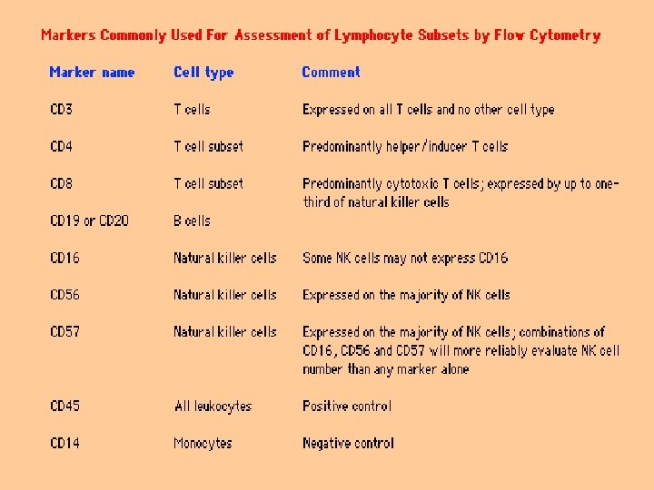 • • • İmmün Yetmezliklerde Yapılacak İlk Değerlendirmeler (Devam) Hücresel immün sistem : -Tam kan sayımı, lenfosit sayımı ( lenfopeni: Total lenfosit sayısı erişkinde <1500 hücre/mikro litre (μl)(mm 3), ( yenidoğanda <2500 hücre/μl), Formül lökosit Gecikmiş tip aşırı duyarlılık testi( PPD of M. tüberkülozis , candida, trikofiton, kabakulak) Flow sitometri ile T hücre altgrupları sayımı (CD 3+, CD 4+ , CD 8+ )