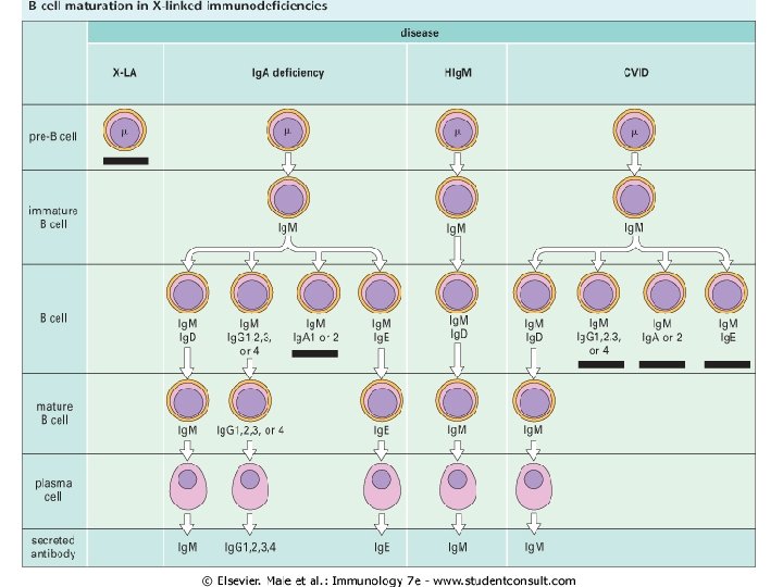 • Bruton Hast: Pre. B hücresinden immatür B’ye geçiş olamamaktadır • Common variable immün yetmezlik(CVID): B hücreleri antikor salan plazma hücrelerine dönüşemiyor • Yenidoğanın geçici hipogammaglobülinemisi: 5 -6 aylık • Selektif Ig. A eksikliği: En sık görülen primer immün yetmezlik(1/500)