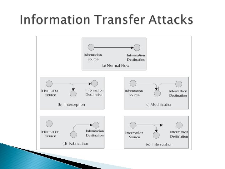 Information Transfer Attacks Interception Modification Fabrication Interruption