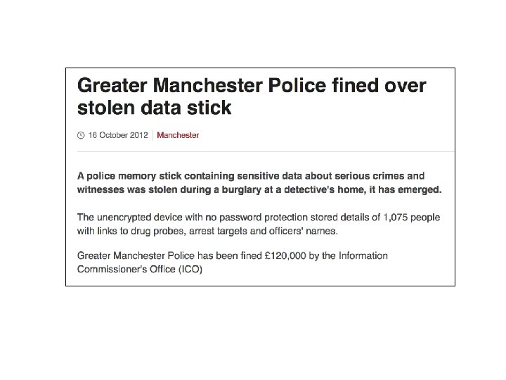 Memory Sticks • Must be encrypted if confidential data is stored – guides with pictures at: www. gla. ac. uk/confidentialdata • In many cases easier to not store confidential data on sticks – use the network instead
