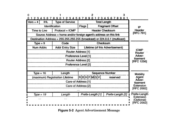 messages for agent discovery • agent solicitations: – force any agents on the link to immediately transmit advertisements – #Fig. 5 -1
