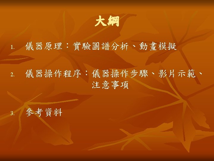 參考資料 n n n Daniel C. Harris (2003) Sixth edition Quantitative Chemical Analysis L. H. Sperling Fourth edition (2006) Introduction to Physical Polymer Science http: //www. perkinelmer. com/