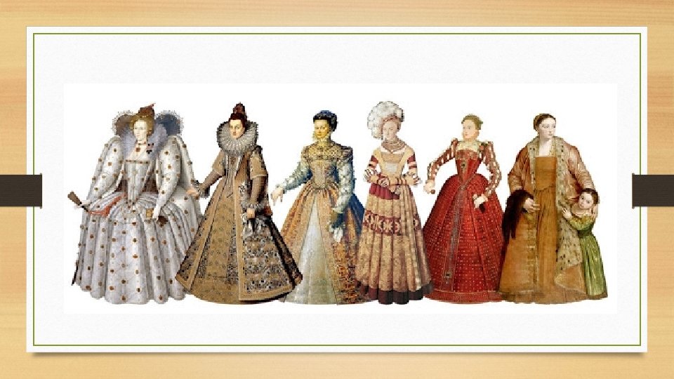 renesans • Renesansowa moda odzwierciedlała postęp techniczny oraz kulturowy. Coraz szerszy dostęp do różnych tkanin powodował większą różnorodność. • Ulubioną tkaniną był jedwab, zarezerwowany jednak tylko dla klasy wyższej. • Posiadanie tej tkaniny w kręgach biedoty podlegało karze. • Szaty były bogato zdobione wyszywanymi wzorami roślinnymi oraz scenami z biblii. • Dość popularnym elementem stroju były futra i peruki.