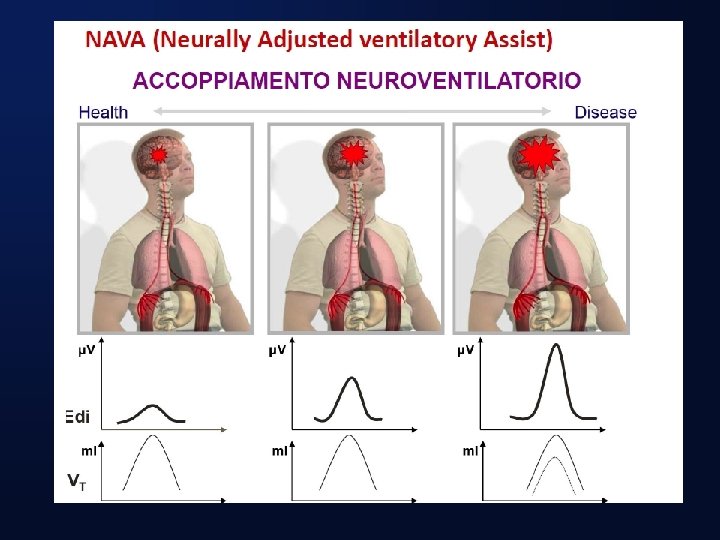 Proportional assisted ventilation Flow (l/sec) Volume (l) 1 -1 0. 8 0 Pao (cm. H 2 O) Edi raw (Volts) Edi, mav (a. u. ) 15 0 10 -10 4 0 Time 0. 56 sec.