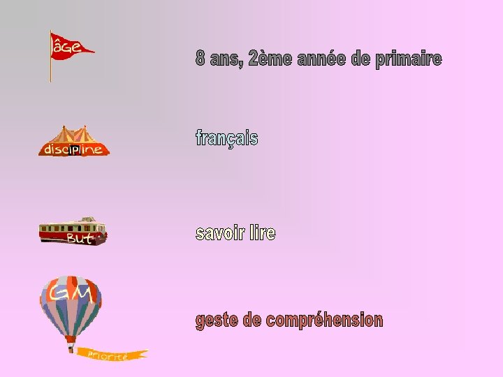 Ecole Ste Thérèse (Ans, près de Liège) Public difficile : - beaucoup d’étrangers - milieu social souvent défavorisé Classe de 2 e primaire : -20 enfants -confiance des enfants dans leur enseignant, bonne ambiance. - 5 enfants en difficulté de lecture, dont 3 en difficulté partout. 2 e année primaire 2005 -06 Enseignant de la classe : Benoît Zinzen. Il est dans sa deuxième année d’enseignement et ouvert à beaucoup de choses. + Valérie : accompagne les enfants en difficulté des classes de 1ère et 2 e année de l’école. Elle les prend en dehors de la classe pour travailler avec eux. Moment : fin de l’année scolaire (mai) → les enfants ont déjà atteint un bon niveau de lecture.